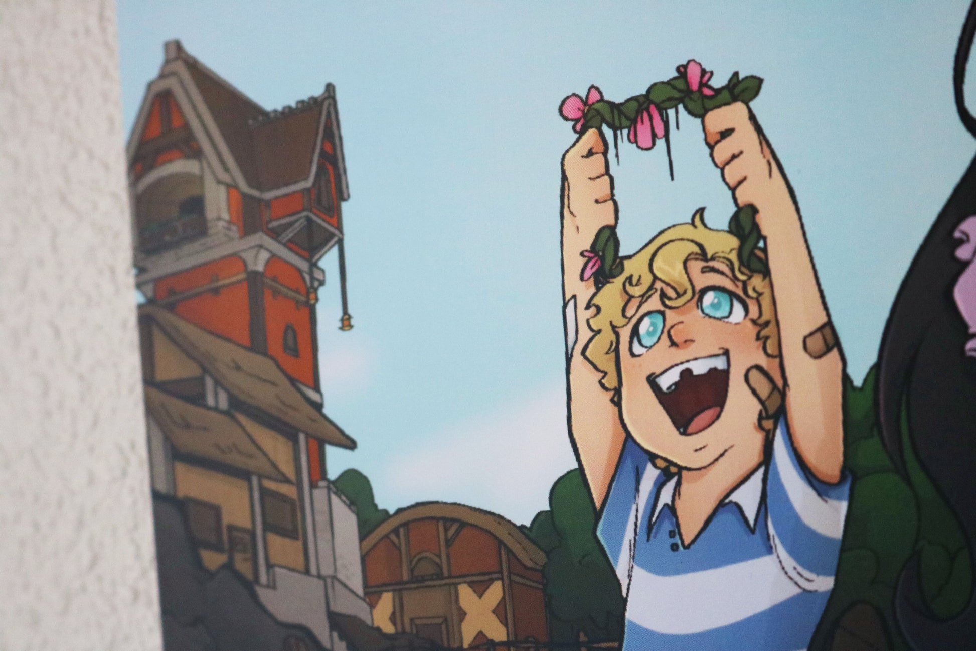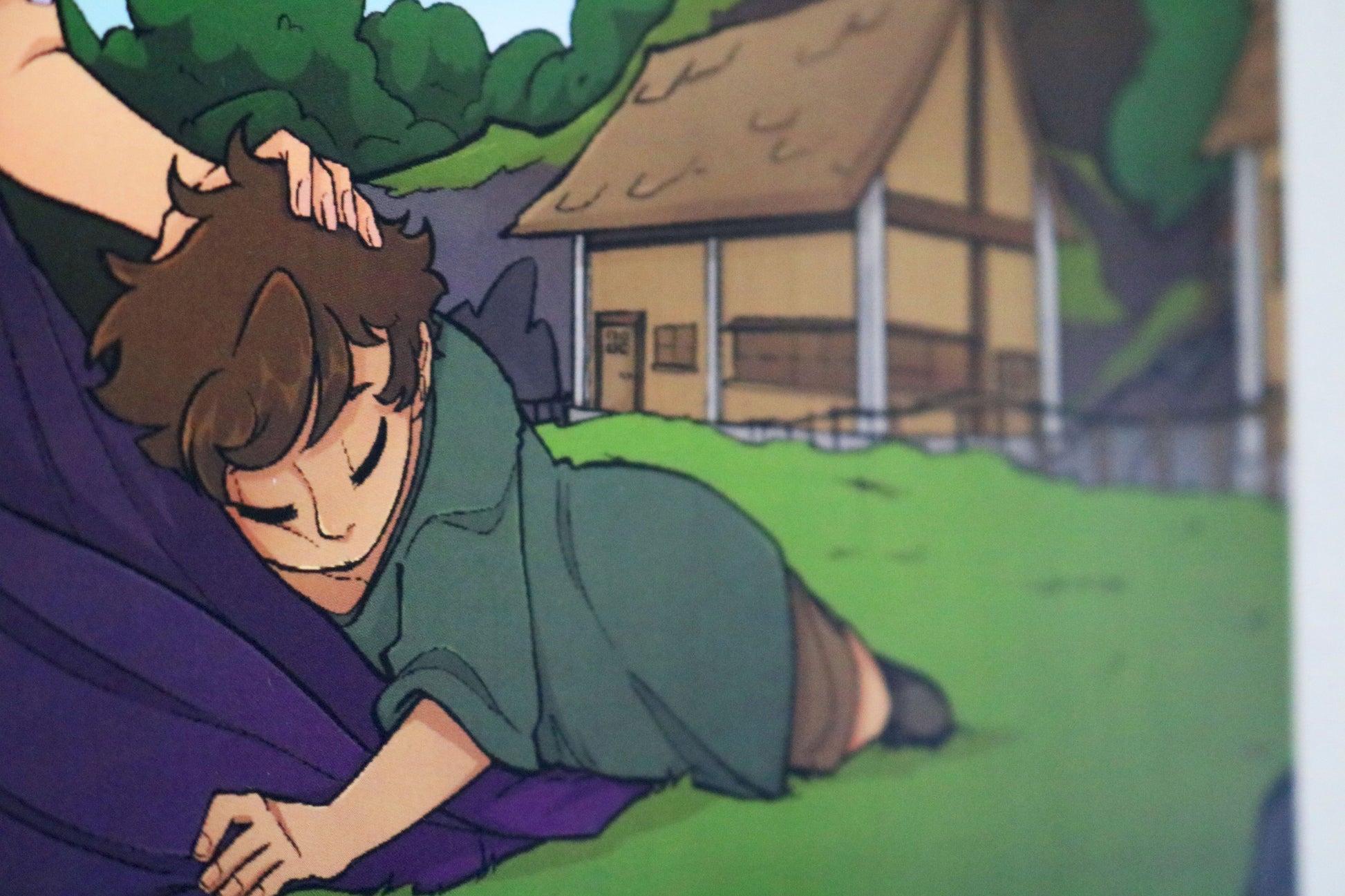 A poster of the main character, Aphmau, from the Minecraft Roleplay YouTube series "Minecraft Diaries" sitting with her two adopted sons, Malachi and Levin.